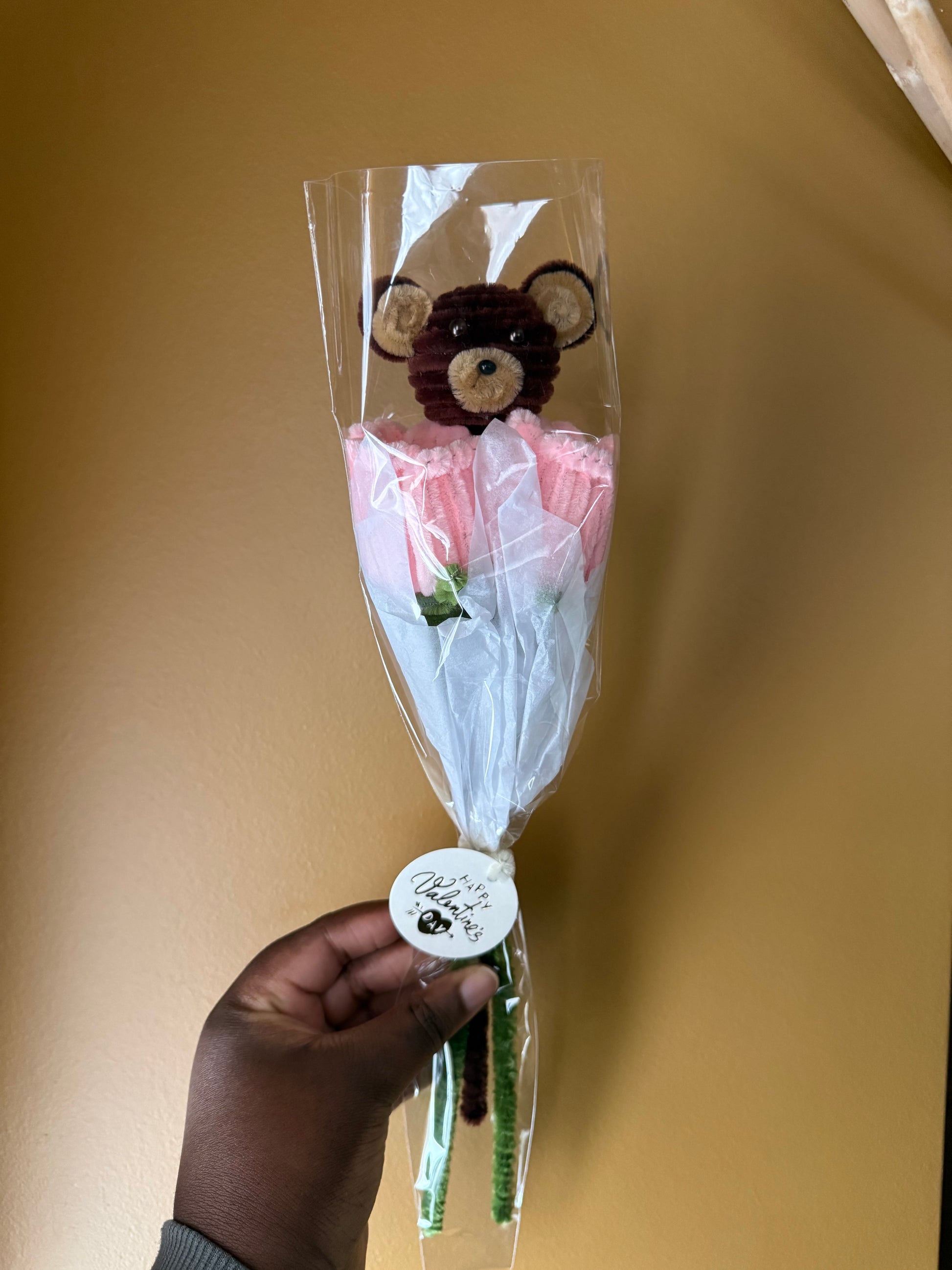 2 Rose Bear Bouquet – Handmade Valentine’s Gift